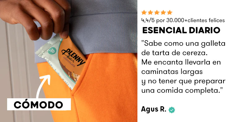 Con proteína vegetal, fibra y sin azúcares añadidos, es el snack ideal para estudiantes, deportistas o quienes simplemente quieren cuidarse sin complicaciones. Cada Plenny Bar contiene 400 calorías, carbohidratos de absorción lenta, 20 g de proteína, grasas, fibra, probióticos y las 26 vitaminas y minerales esenciales.