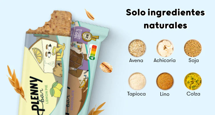 Una caja de Plenny Bar contiene 12 barritas de 100gr cada una. El ingrediente principal es avena y son 12 comidas de 400 kcal,cada comida te aporta el 20% de todos los nutrientes que tu cuerpo necesita diariamente.
