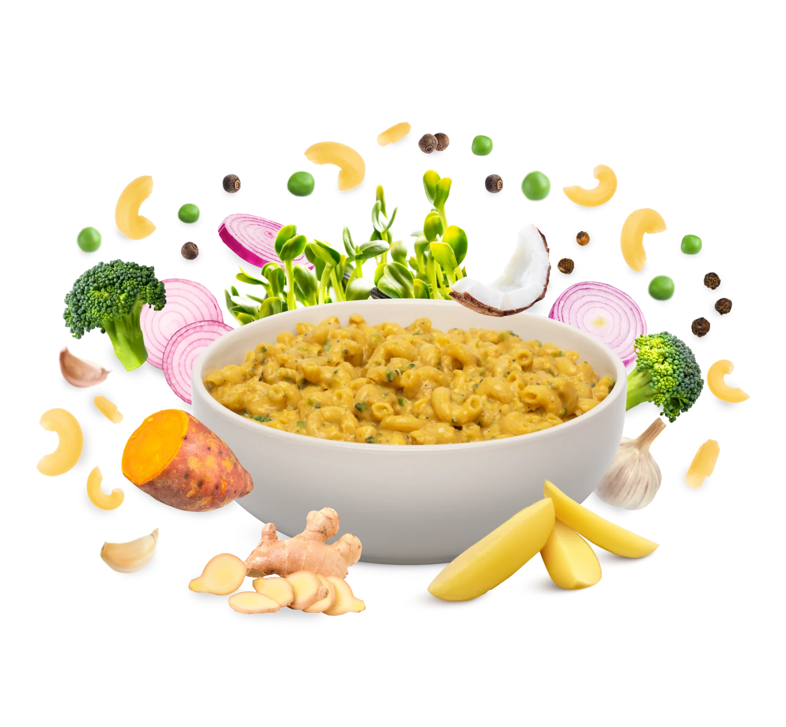 Nuestros ingredientes de origen vegetal consisten en una fina mezcla de cereales, verduras liofilizadas, especias y proteínas vegetales. ¡Sin saborizantes artificiales! Como resultado, cada comida contiene…