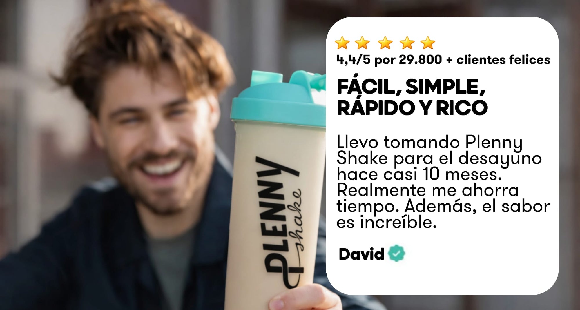 "Llevo usando Plenny Shake desde hace aproximadamente un año. ¡Está realmente bien! Cuando no tienes tiempo para cocinar, el batido es super práctico. ¡Es rápido, delicioso y nutritivo!"