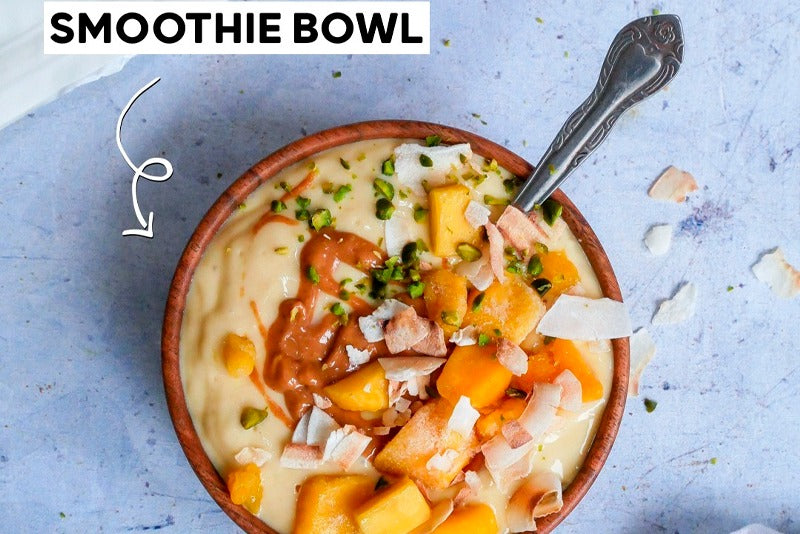 ¡Este Smoothie Bowl de Coco, Plátano y Mango de dos pasos es el refrigerio de verano súper rápido y refrescante que todos hemos estado esperando!